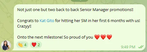 Promotions + Team milestones